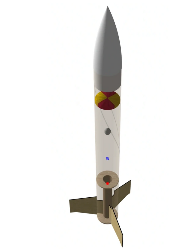 The National Association of Rocketry (NAR) requires you to build and successfully fly a Level 1 (L1) certification rocket to ensure you have the skills, knowledge, and safety awareness needed to handle high-power motors. The process is meant to demonstrates that you can design, construct, and launch a rocket that safely uses H-class or larger motors. Throcky was my successful attempt at gaining certification. If your wondering why the name Throcky, this rocket was named as a tribute to the name used for many practice problems in my physics textbook, throckmorton. Why did my textbook use this name? Beats me too.